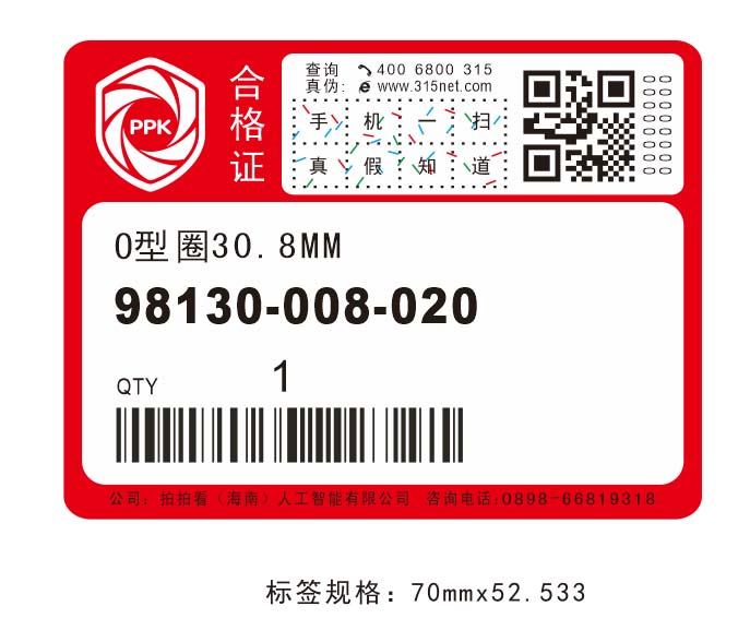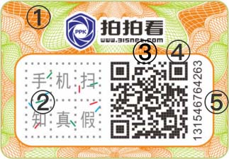 特点:标签上的彩色亮片真实存在。所有标签在生产时都经过拍照存档,每一枚标签都有存档图片。消费者扫码后,对防伪标签进行拍照上传,系统会根据消费者提供的照片与存档照片进行人工智能比对,给出鉴定结论。